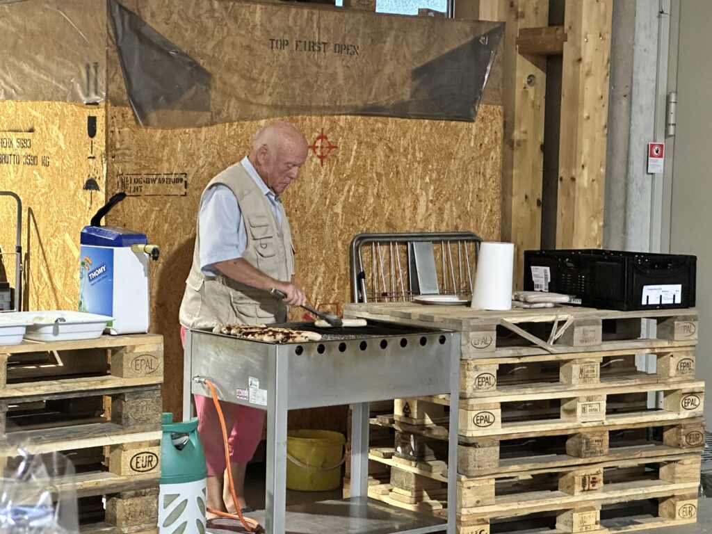 Hans aus Kandergrund hat mit seinem selbst geschweissten Grill eine perfekte Grillfläche für die Hamburger geliefert. Wir durften aus den zahlreichen Zutaten einen Hämbi selber basteln was für einige eine Herausforderung war….