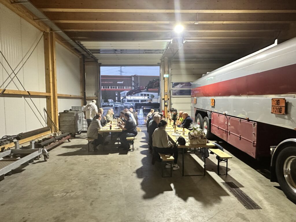 Franz Wyss, Franz Wyss und Franz Wyss haben den KMU Brügg Aegerten in ihrer Halle in Studen zu sich eingeladen. Die Franz Wyss AG transportiert für ihre Kunden v.a. deren Maschinen und Heizöl und andere Flüssigkeiten. Dazu werden auch Kranarbeiten angeboten, wofür ein beeindruckender Teleskopausleger zur Verfügung steht. Wir durften in ihren LKW einsteigen und wer schwindelfrei ist konnte sich auch 32 Meter in die Luft heben lassen. Dazu gab es Bratwurst vom Grill und Getränke in Hülle und Fülle! Herzlichen Dank an Franz, Franz und Franz für den gelungenen Abend!